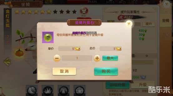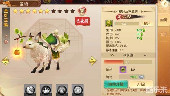 成长:坐骑系统四阶起可以使用,永久提升百分比属性。