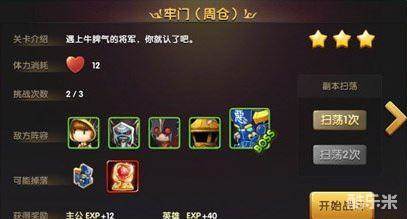 牢门周仓作为英雄模式第九章的第一个关卡,不少玩家都会在这一关感到很吃力。不仅是因为游戏到了中后期,兵种变得更多更强。而且周仓这个英雄本身就很难对付。作为前排辅助型武将,周仓很肉,发动大招霸王枪突可以免疫伤害,并且反弹所有伤害,所以周仓在觉醒的时候玩家们千万不要放高伤害技能,否则吃亏的是自己。