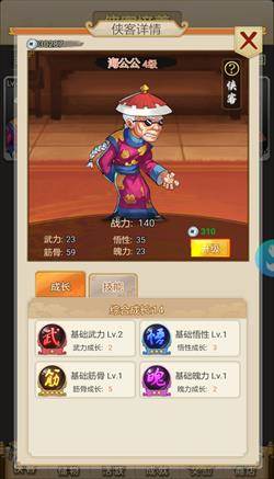 不断地对成长和技能进行升级,侠客的战力也会不断地提升上去,然后继续进行剧情闯关,你会发现轻轻松松就过五关斩六将了呢~