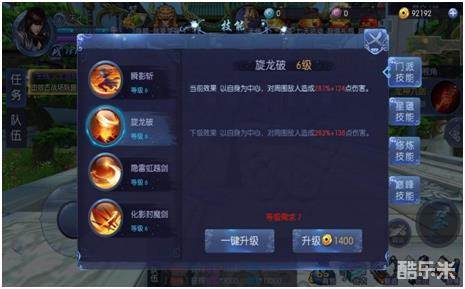旋龙破,为以自身为范围的范围攻击技能,在技能修炼之后可以附带有击飞的效果,使对手停滞在空中,封锁对方的技能释放。