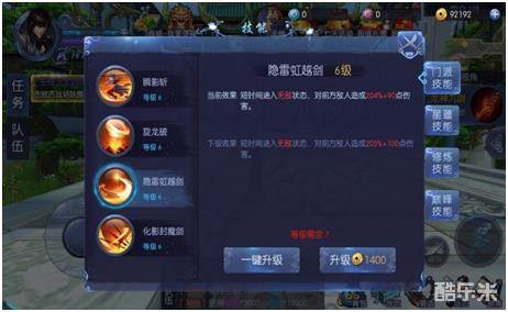 隐雷虹越剑,以自身当前位置向前方以圆弧扇形进行冲刺,对前方敌人造成攻击,并将自身进入短时间的无敌技能。这个技能使用的方式可以很多,高伤害可以给到对方一定的打击,并且在攻击过程中无敌的状态使对方无法成功的反击到你。同时无敌的效果也可在躲避对方的技能效果以及boss技能时使用,是一个相对使用灵活实用的技能。