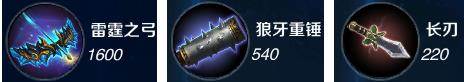 中期装备:雷霆之弓,狼牙重锤,长刃