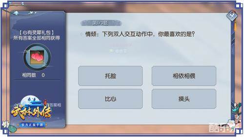 激萌酷炫小游戏添加夫妻小情趣,双方了解有多少,敢不敢来测默契?同样题目双方一起答,检验二人心有灵犀还是同床异梦,小心回家跪搓衣板;夫妻同屏对诗玩法,选择指定汉字作答,二人对答成诗,考验文学底蕴,你来我往,好文采;超炫酷QTE玩法“琴瑟合奏”,即时闯关,到底perfect还是miss多?抓好机会,别抢拍!语音开起来,欢乐聊天玩游戏,甜蜜升温!
