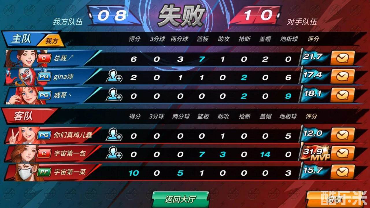 C组决赛【皮皮虾】对【危险战队】,双方都使出了稳扎稳打的战术,【危险战队】后续利用灵活、强力的内线选手,克制住了【皮皮虾】的攻防套路,关键时刻拉开比分拿下比赛,以大比分4:0战胜【皮皮虾】!