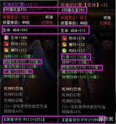 从这个图中大家可以看得到,神曲史诗装备是强还是弱,同样是10星的物理攻击,紫装的是只有83点的物理攻击,而史诗就有100点的物理攻击,10星的力量,比紫装高出5点,在强化的基础上大大的提高了基本的属性值。