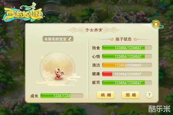 子女成长可分为“婴儿期”、“幼儿期”和“孩童期”三个时期,其中,“婴儿期”与“幼儿期”主要以养成类玩法为主,玩家可通过孕育、领养、日常照料、培训学习等方式步步提升子女的成长值及资质,这些将直接影响到“孩童期”子女作战时的战斗实力!