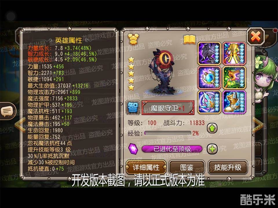 作为中排法师,智力成长优秀,出色的魔法强度使他的各种眼神攻击相当犀利,生命值、护甲和魔抗属性与同类法师相比具备一定的优势,使他可以在战场上更久地凝视对手。3点技能等级的提升将有助于魔眼的技能更精准地命中敌方。他的眼神攻击附带多种控制效果,如眩晕、击退、减速等,觉醒后更能重点针对敌方高伤害英雄产生一定的限制。魔眼的视力非常尖锐,擅于隐身的英雄将丧失自己的优势,并遭到魔眼的特殊关照。队长大大们可要小心被魔眼诡异的目光所注视哦!