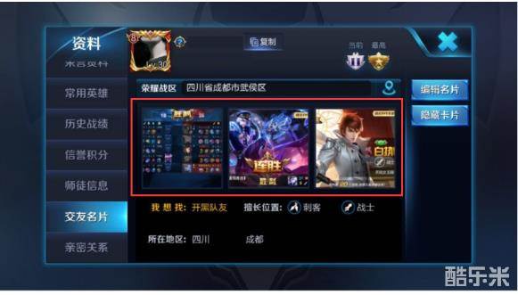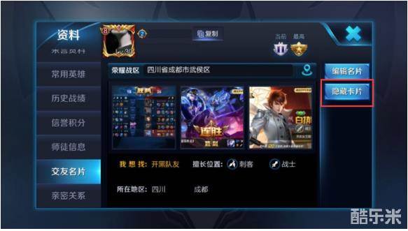 如果召唤师不希望对外公布自己的游戏相册内容,可通过交友名片—隐藏名片功能,将相册隐藏,此时其他召唤师将无法查看该相册。