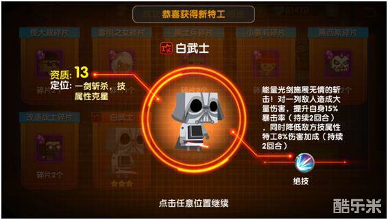 能量光剑施展无情的斩击!对一列敌人造成大量伤害,提升自身15}暴击率(持续2回合),同时降低敌方技属性特工8%伤害加成(持续 2回合)