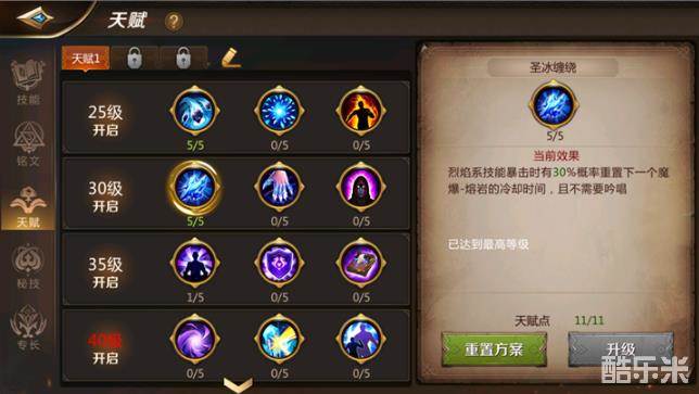 圣冰缠绕天赋:烈焰系技能暴击就30%概率刷新魔爆-熔岩
