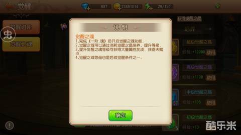 进去之后呢,我们可以看到这个界面,当然木木已经在弄二阶了,一阶很简单,要求不难,二阶就要搞上一阵子了,为什么要搞上一阵子呢?这就说到点子上了,因为我们还要把觉醒之魂升到20级!觉醒系统主界面左上角一共有两个栏,第一个是觉醒进阶,另一个就是觉醒之魂了,戳进去看看吧!