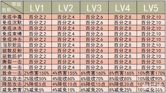 这里伤害有无视防御的百分162的伤害,还有百分之104的伤害,这两个伤害加成堪称恐怖,并且在PVP中触发可以说是决定胜局的被动。伤害减免中规中矩,但是三级前都没用,数据太低。如果五级在大招时候触发可以说对方就输了,有决定胜局的能力。