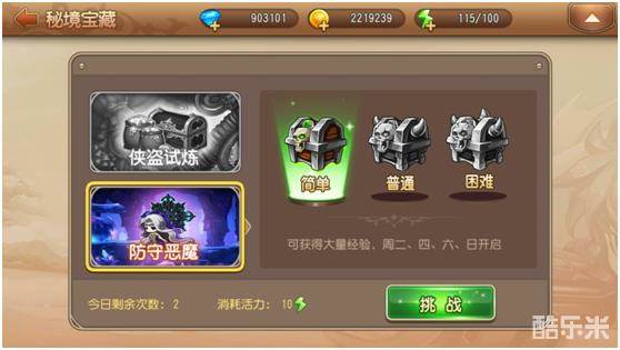 秘境宝藏分为两个副本:侠盗试炼&防守恶魔