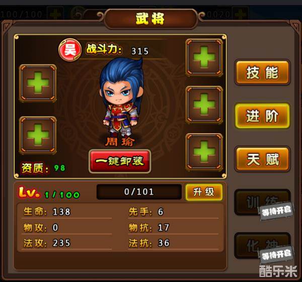 周瑜:远程杀伤型,法术伤害输出,造成成吨伤害的同时还能离间敌人,作为纯输出武将,周瑜在游戏中后期都将成为主力队伍的一员。