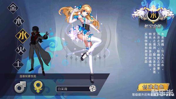 玩家进入斗罗大陆后,可根据个人的喜好选择初始武魂类型及性别,其中性别只影响角色的外观,不影响角色属性。武魂类型分为:金、木、水、火、土,不同属性的武魂拥有各自独特的技能,根据五行相克的原则,各角色之间的伤害会有所浮动。相克原则为:金克木、木克水、水克火、火克土、土克金。