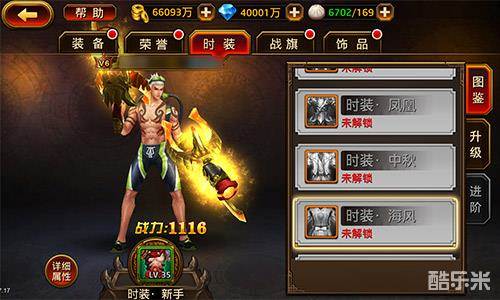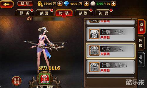 新款时装海风分男女两款。女武将所穿的泳装主打蓝色系。有适合成熟御姐穿戴的深蓝三件套比基尼。头戴遮阳帽,腰拢一袭蓝紫色薄纱,更显长腿性感魅力。也有专为可爱萝莉准备的天蓝色比基尼。搭配彩色的花环头冠,腰侧一朵鲜艳的向日葵,活泼俏皮之气扑面而来。而男武将则以一套绿色系的潜水泳装亮相。泳裤以深蓝底色映衬鲜绿环条,在很好地表现海水主题的同时,更显壮硕的身材。其身上背负的潜水装备其实是战场杀敌的强力武器,能给予敌人意想不到的迎头痛击!