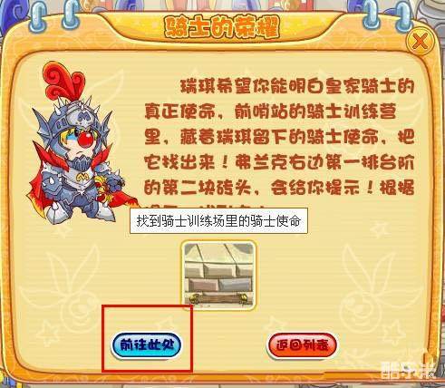 到达骑士训练场,按照提示找到那块砖头。然后看看会出现什么吧!