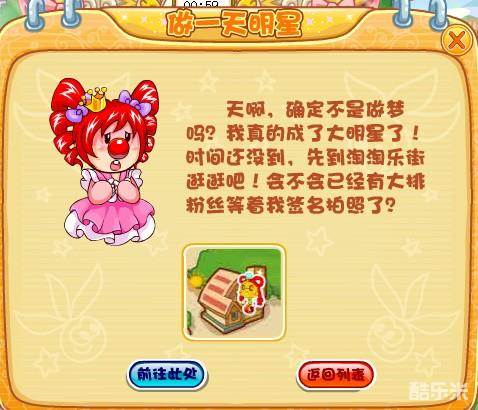 么么公主说我入选了?!到时候我一定会准时去动画片首映的!先去淘淘乐街逛逛吧!会不会已经有大排粉丝等着我签名拍照了?