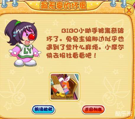 小乖的bibo小助手被别人破坏了,兔兔主编那边似乎也有麻烦,那就去报社那边看看吧。