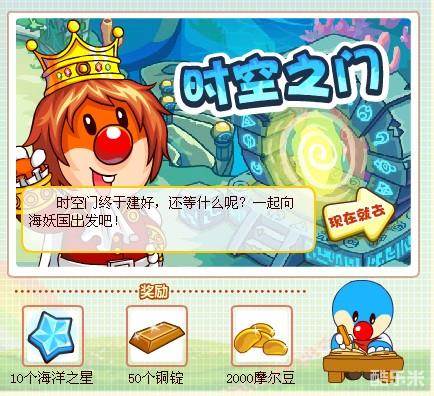 摩尔庄园中的时空之门终于建成了,那就赶紧出发向海妖国进军吧。完成任务还能获得:10个海洋之心、50个铜锭和2000摩尔豆哦。