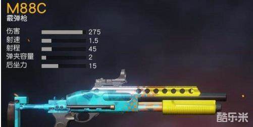 M88C是所有枪械中伤害最高的,它的伤害高达275,比两把AWM的伤害还要高!无论是三级头和三级甲它都不放在眼里,它也是三把霰弹枪中射程最远的,而且它还是唯一能够安装瞄准镜的霰弹枪,开镜之后精准度非常高。