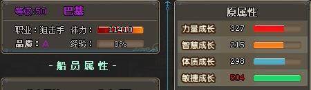 3.最强综合攻击实力,最高敏捷的巴基:力量最大504,体力最大450(巴基的绝技和体力有关),敏捷最大504