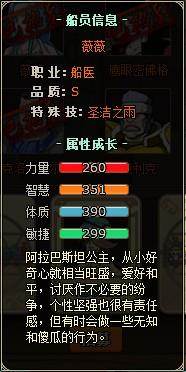 所有船员技能属性介绍完毕,大部分船员我也只是招募出来稍微试验了一下技能,没有往深了去带。各位看官若有其他心得可跟帖反驳,虚心求指教。