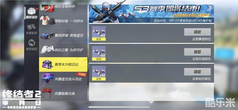 随着新学期的正式开始,秋风逐渐将凉意带到各地,炙热的S3赛季也即将落幕,你是否取得了优秀的战绩,实现了段位的突破?最后一周,尽情去冲击更高段位吧,诱人奖励等你拿!