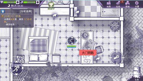 大门钥匙在如下图的位置,抽屉里面。这里记得顺便把衣柜也搜索了,可以捡到一双【麻布鞋子】,装备上后就可以加速跑了。