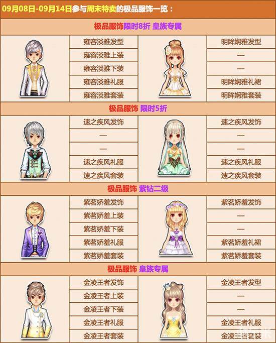 新学期新气象,开学季享好礼!9月8日-14日,极品【雍容淡雅/明眸娴雅套装】、【速之疾风套装】、【紫冥浮生套装】、【曼姿醉醇套装】等限时出售,手快有,手慢无哦!