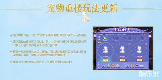 除此之外,9月版本宠物重楼玩法更新,通过世界地图-炫宠擂台-勇闯重楼-重楼幻境,想打败重楼幻境BOSS需要消耗幻境门票,关卡只等有缘人来开启,丰富奖励等你来!