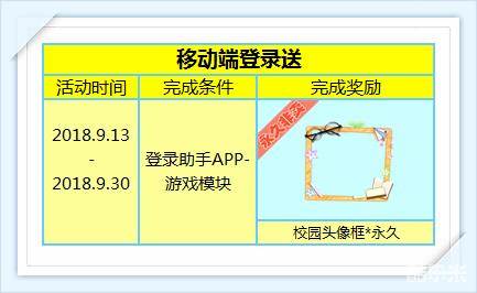 9月13日-9月30号,只要登录助手APP-游戏模块,就可以轻松获得永久校园头像框!还在等什么,动动小手,快来领取吧!