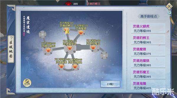 点击右上方的地图按钮,即可查看活动地图,各个boss的位置有明确的标注,而小怪和灵印会随机的分布在地图范围内,需要道友细心查找哦。发现后,靠近灵印,点击出现的吸收图标即可,每日最高上限3次。