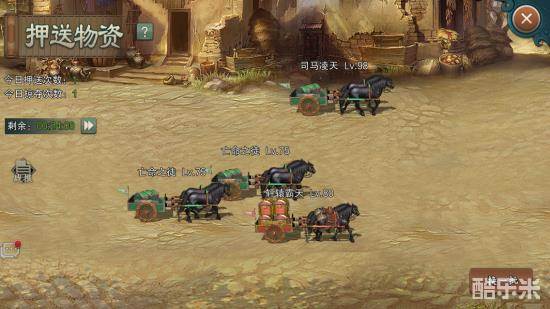 玩家可以在大地图上进行押镖活动,押镖活动开启后玩家会随机发现其他玩家押运的镖车,可以选择劫持其他玩家的镖车,若劫镖成功,则获得其他玩家押镖的部分收益,若劫镖失败,玩家没有损失。