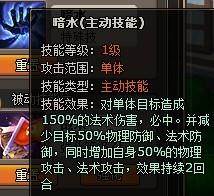 如图,暗水的附加效果从30%加强到50%了,只不过依旧是个单体技能,并且技能本身伤害低到不可思议,于是很显然大家依旧不会带他上场,和另外5个超给力的群体伤害/控场的SS人物相比貌似确实是逊色太多了~