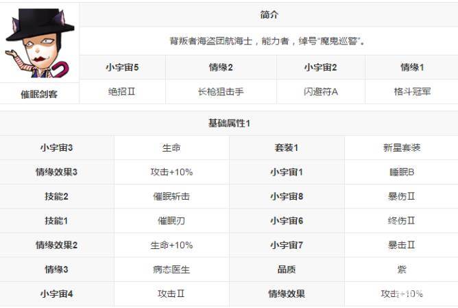 以上就是草帽小子角色催眠剑客属性数据解读的全部内容