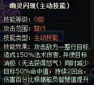 主动技能:幽灵闪现:攻击敌方一整行目标造成150%法术伤害,并使目标消极(无法获得怒气)同时减少目标50%命中值,持续2回合,伤害百分比根据船员智慧值提升。