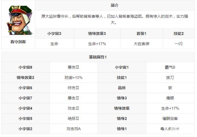 看守剑客是原大监狱看守长,后帮助背叛者等人,已加入背叛者海盗团。拥有惊人的剑术,实力强大,下面不妨详细了解一下吧。