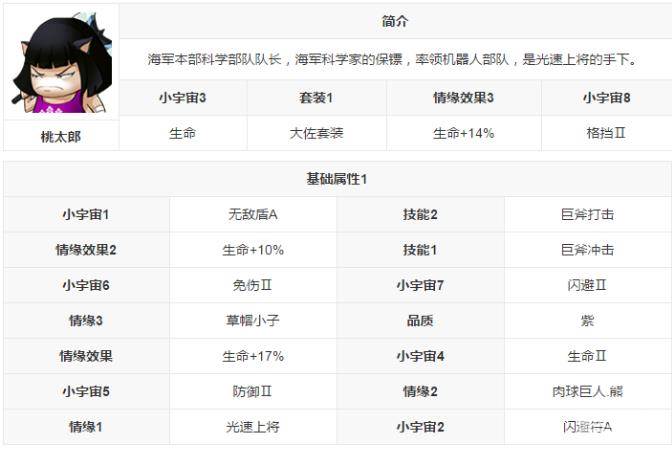 桃太郎是海军本部科学部队队长,海军科学家的保镖,率领机器人部队,是光速上将的手下,属性上有什么特点呢,下面不妨详细了解一下吧。