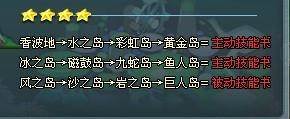 一、首先照顾的区域 :主动技能书,被动技能书随机出现,需按顺序经过4个海岛。