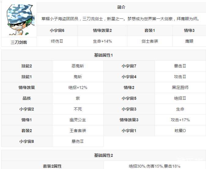 以上就是草帽小子角色三刀剑客属性分析的全部内容