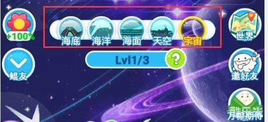 注意:每个世界的场景都是“海底-海洋-海面-天空-宇宙”