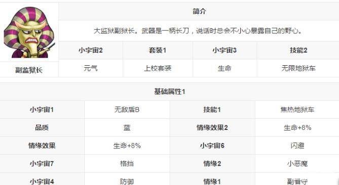 副监狱长的武器是一柄长刀,说话时总会不小心暴露自己的野心,属性上有哪些特点呢,下面不妨详细了解一下吧。