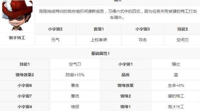 新手特工是刚刚完成特训的政府组织间谍新成员,习得六式中的四式,因为任务失败被猎豹特工打出车厢外,下面不妨详细了解一下吧。