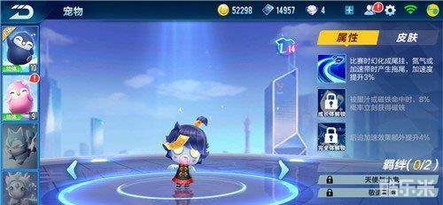 比赛时幻化成尾挂,氮气或加速带时产生拖尾,加速度提升3%,最高可提升9.4%。此属性是所以宠物的共有属性,而最高8.4%的加速度数值处于所有宠物的中等水平。