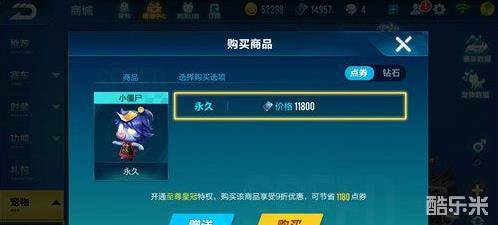 小僵尸目前可以在商城通过11800点卷/1080钻石直接购买。