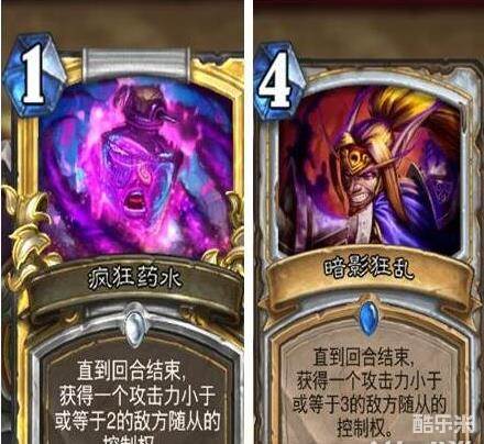 两个窃取,消耗一多一少,个人最喜欢疯狂药水,费数消耗少,相对灵活一些,前期面对快攻职业能够有所帮助。