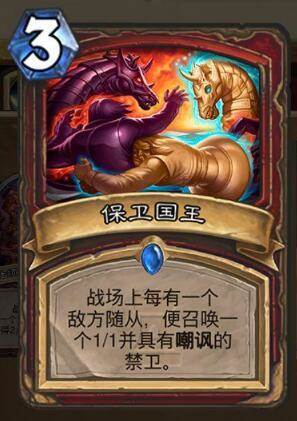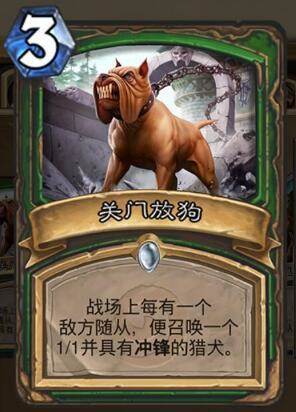 该卡出自卡拉赞之夜,虽然热度不高,但却是一张经典的防快攻设计,我相信给其他职业一定会大放异彩,虽然该卡跟放狗相比逊色太多,只能说是一张攻守兼备的尝试性设计卡牌。