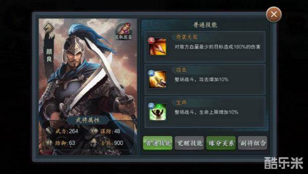 对于紫将的输出型英雄来说,颜良算是一个适合初期上阵的武将了。