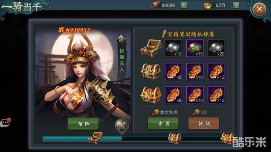 2、一骑当千 ,通过挑战关卡来获取培养丹,每天能免费重置一次一骑当千增加获得培养丹数量。